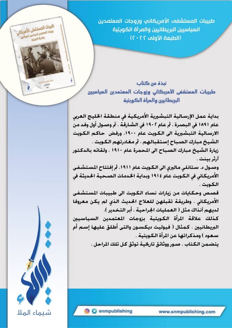 يتناول الكتاب توثيق تاريخ وصول البعثات الإرسالية التبشيرية إلى منطقة الخليج عموماً والكويت بشكل خاص وذلك عام 1891. ويوثق أيضاً بناء أول مستشفى في الكويت وهو المستشفى الأمريكاني. ويضم الكتاب العديد من الأحداث الخاصة بالمرأة الكويتية وتقبلها لفكرة العلاج بطرق حديثة وطريقة تعاملن مع نساء أجنبيات لأول مرة.