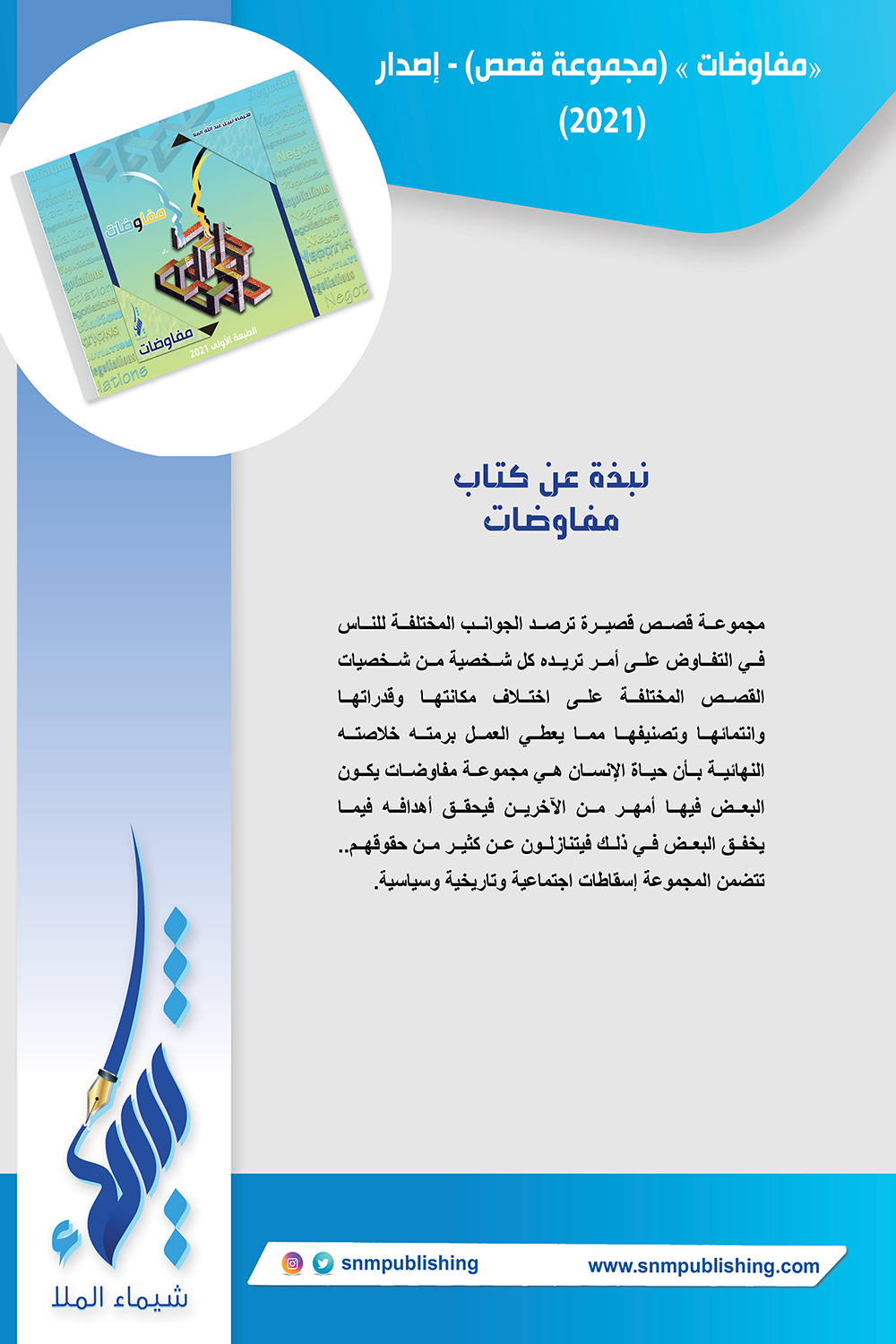 كتاب " مفاوضات" هو مجموعة قصص قصيرة ترصد الجوانب المختلفة للناس في التفاوض على أمر تريده كشخصية من شخصيات القصص المختلفة على اختلاف مكانتها وقدراتها وانتمائها وتصنيفها. وتعطي المفاوضات العمل برمته خلاصته النهائية لأن حياة الإنسان هي مجموعة مفاوضات يومية