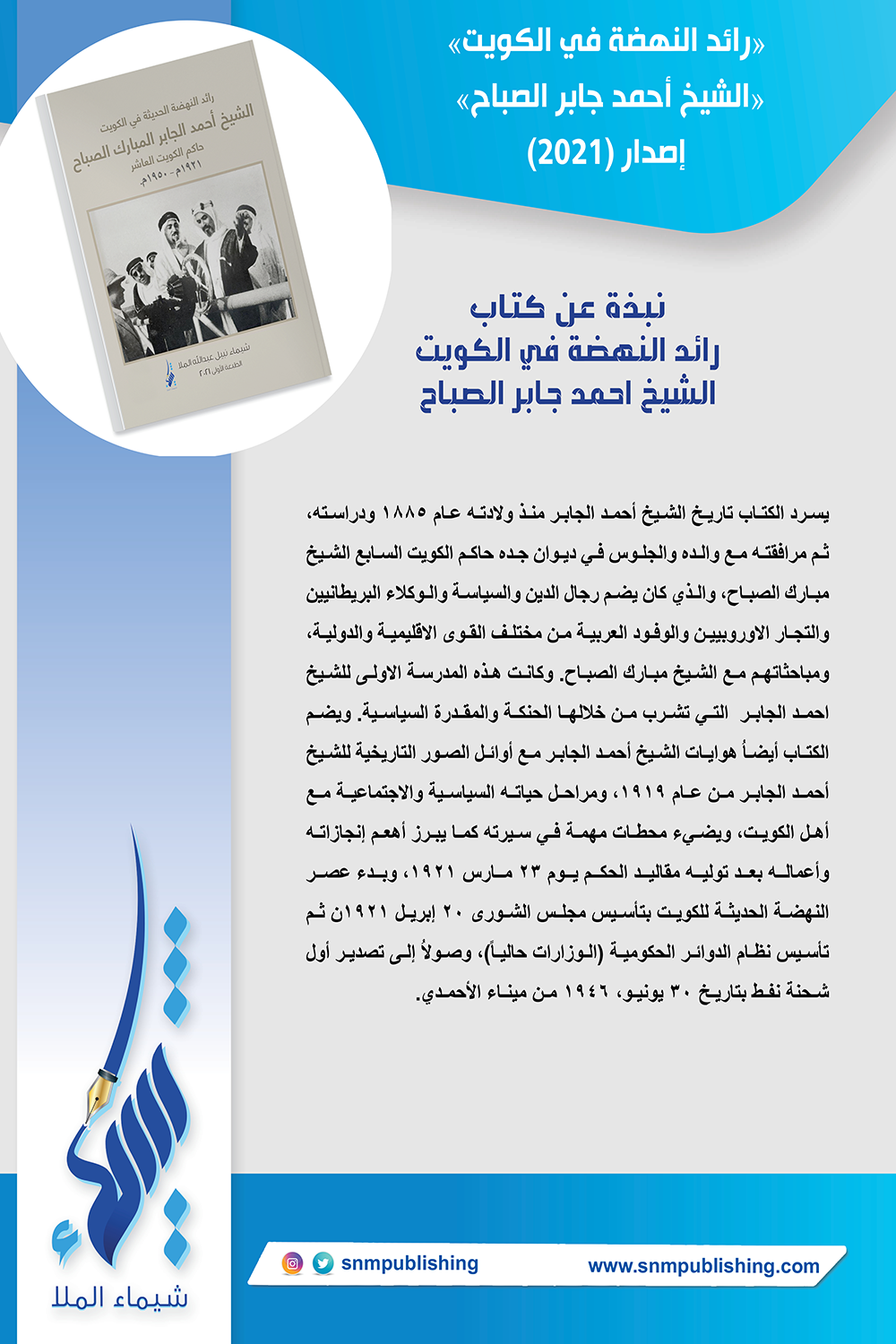 ويلقي الكتاب الضوء على أهم الأحداث التي وقعت في عهد سمو الشيخ أحمد الجابر رحمه الله والإنجازات العظيمة التي أدت لتأسيس النهضة الحقيقية في دولة الكويت على كافة المستويات السياسية والاقتصادية والاجتماعية.