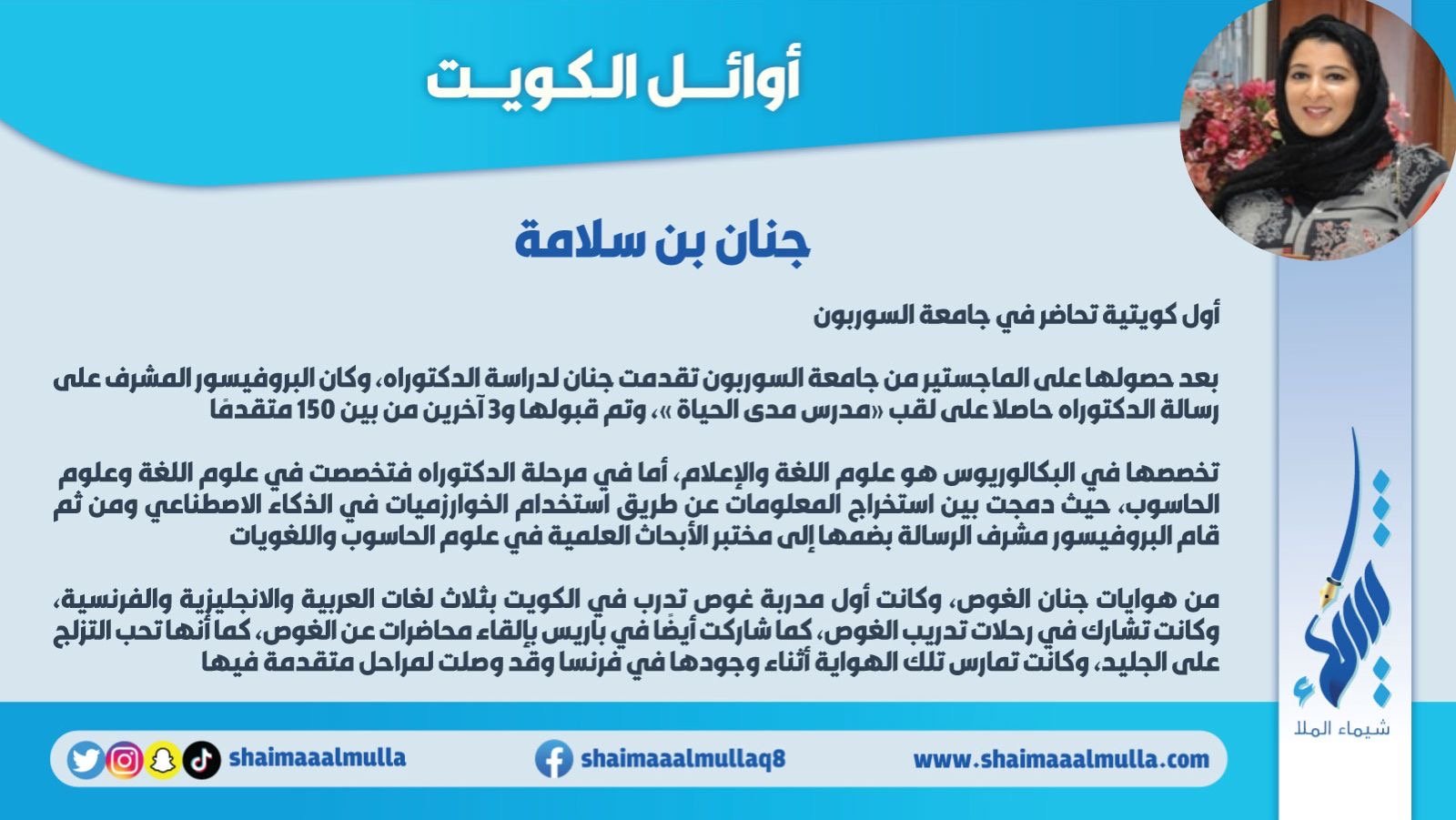 يعتبر كتاب "أوائل الكويت" موسوعة تفصيلية لعدد كبير ومتنوع عن كل ما هو الأقدم في تاريخ الكويت والذي يعود لآلاف السنين قبل الميلاد حتى العصر الحالي. ويضم هذا الكتاب الأوائل في الآثار والتاريخ والجغرافيا ، كما يغطي مسيرة الكويت المعاصرة في مجال السياسة.و يضم الكتاب أيضا كل أوائل الكويت من الشخصيات التي كان لها الريادة في جميع المجالات من التعليم والسياسة والفن والعلوم والموسيقى والإعلام والصناعة والتجارة وغيرها من الجوانب الإنسانية والثقافية والسياسية والاقتصادية والتجارية في الكويت. كما تحتوي موسوعة " أوائل الكويت" على كم هائل من المعلومات والصور التوثيقية. ومن أجل إبراز دور جميع الأوائل في الكويت في مختلف المجالات وبشكل متواصل زمنيا قمنا بإنشاء هذا الموقع الالكتروني الذي يتم تحديثه باستمرار ، كما سيتم طباعة هذه الموسوعة في نسخة ورقية محدثة .
