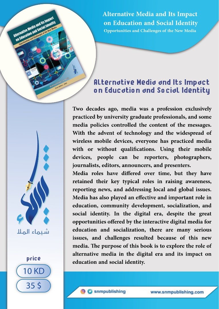 This purpose of this book is to explore the roles of alternative media in the digital era and its impact on education, society, socialization, and social identity. This book also discusses the advantages and disadvantages of alternative media and the most important issues and problems caused by the new media in the digital age.
