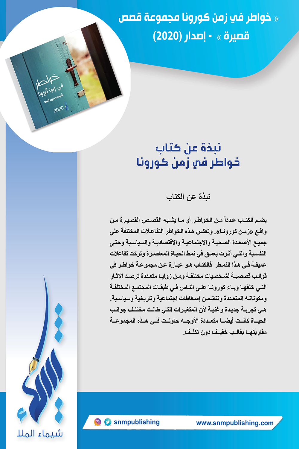 These short stories deal with various topics that reflect the health, social, economic, political, and psychological aspects which have been deeply affected during the Covid-19 pandemic that began in 2019 and continues until now - 2021. These real-life experiences are described through these thoughts and short stories.