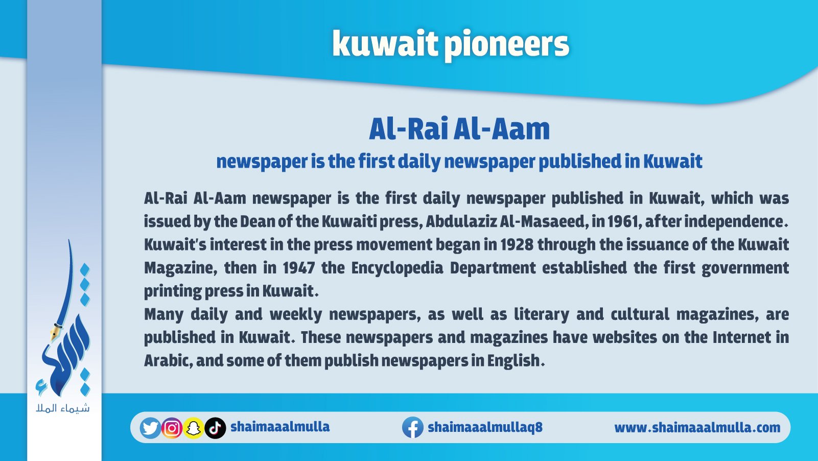 “Pioneers of Kuwait" is an encyclopedia contains a huge amount of information and images that cover all the earliest figures and achievements in various fields of the history of Kuwait. The book includes those who are pioneer in many fields such as: archaeology, history, geography, education, politics, arts, science, music, media, and other humanitarian, cultural, political, economic, and commercial aspects in the history of Kuwait.