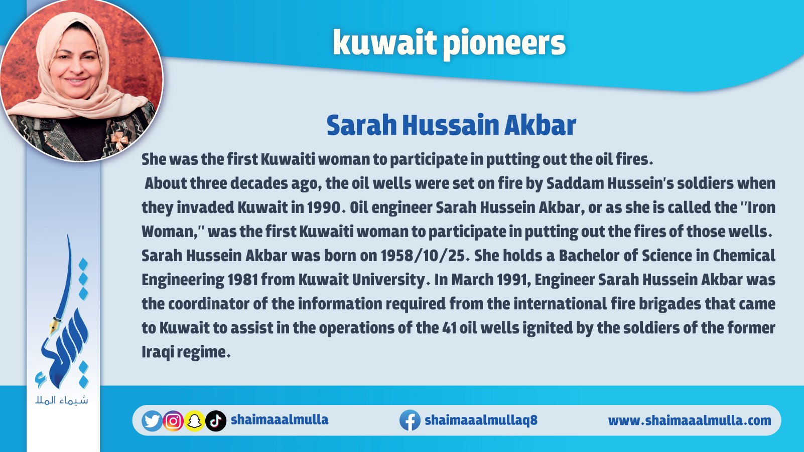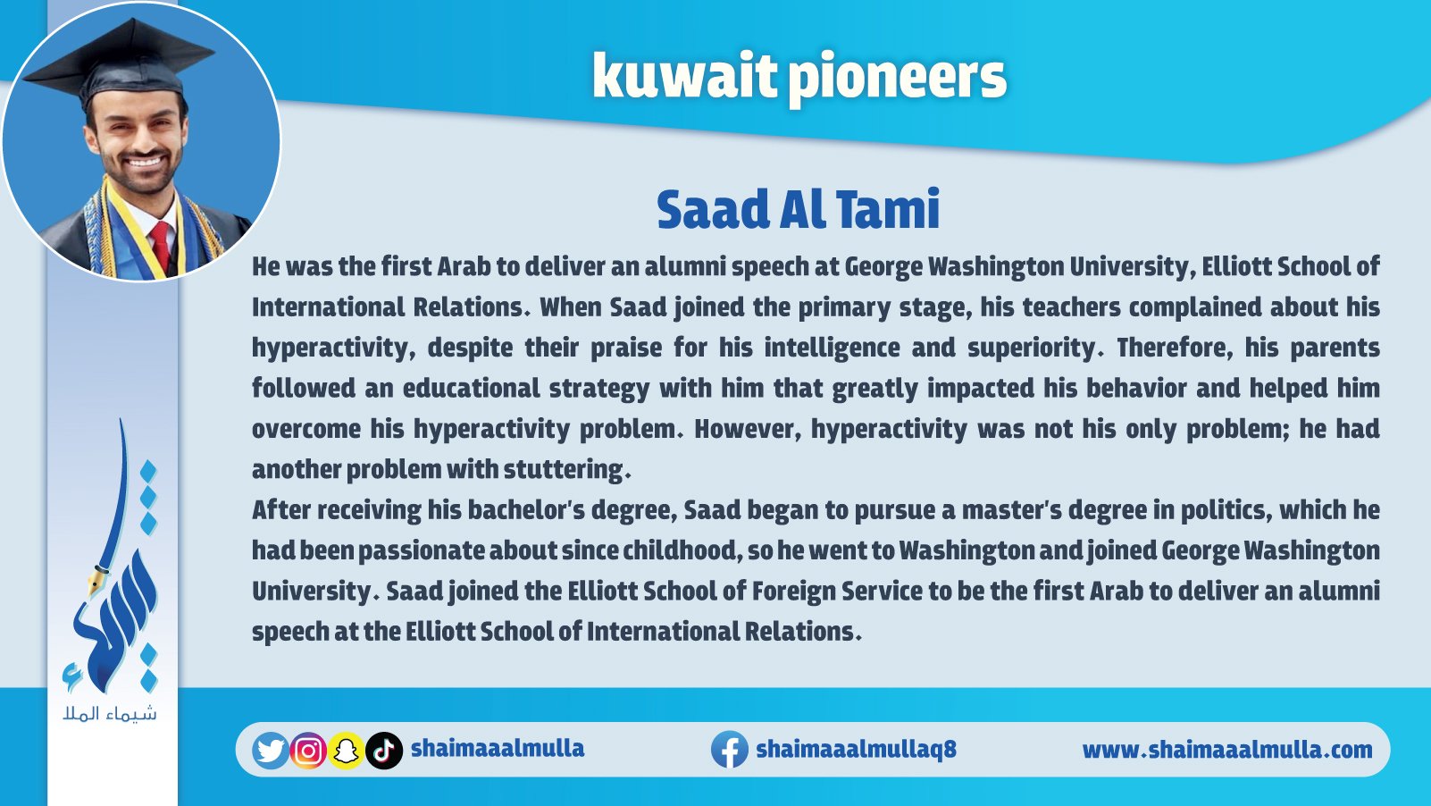 “Pioneers of Kuwait" is an encyclopedia contains a huge amount of information and images that cover all the earliest figures and achievements in various fields of the history of Kuwait. The book includes those who are pioneer in many fields such as: archaeology, history, geography, education, politics, arts, science, music, media, and other humanitarian, cultural, political, economic, and commercial aspects in the history of Kuwait.
