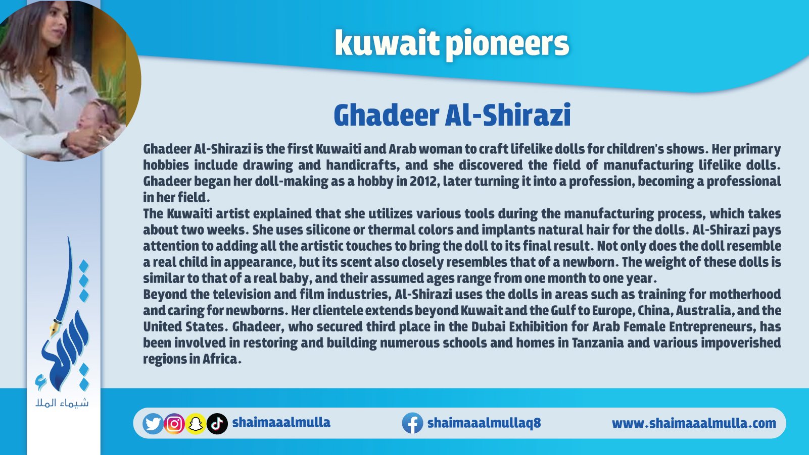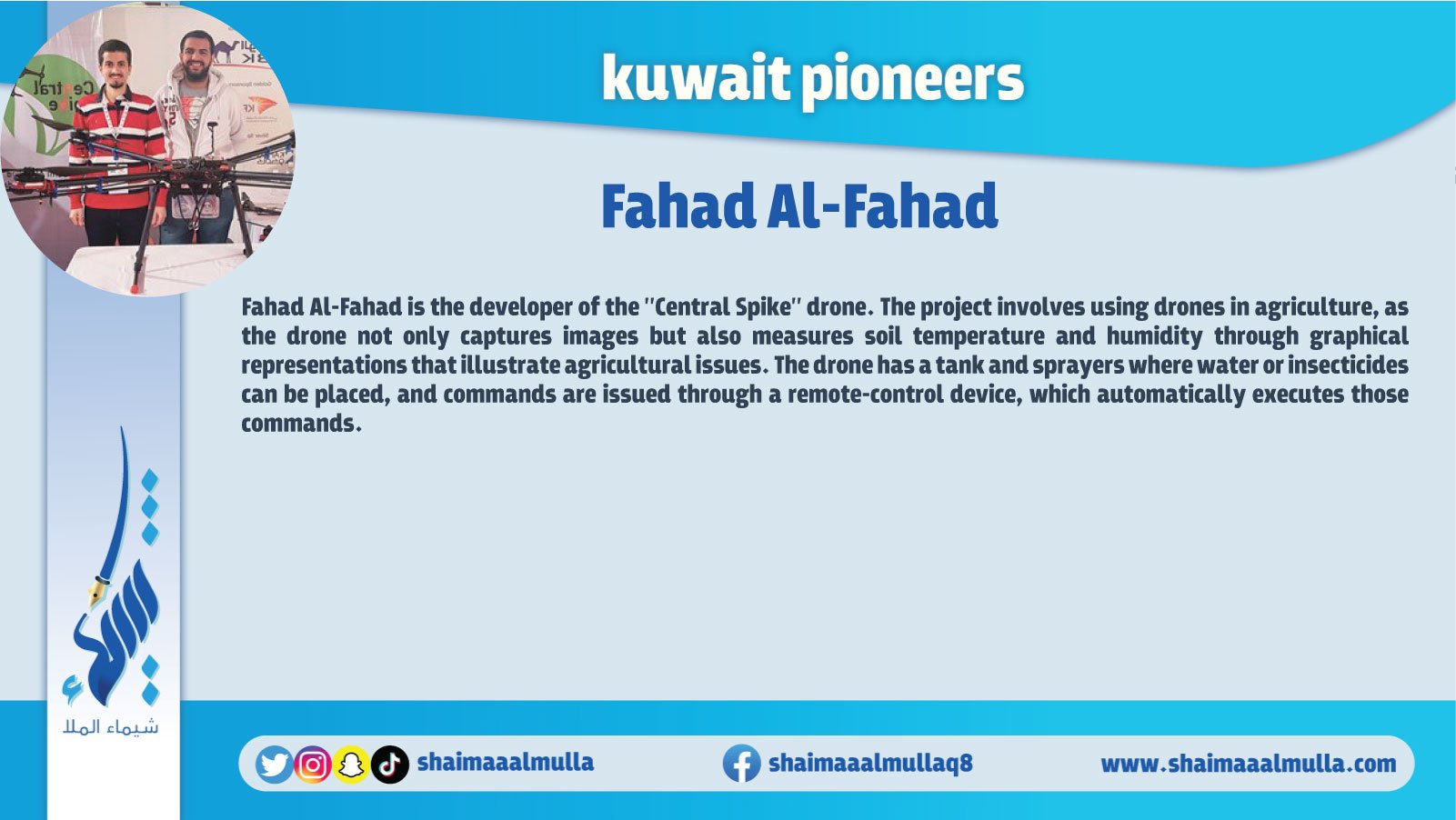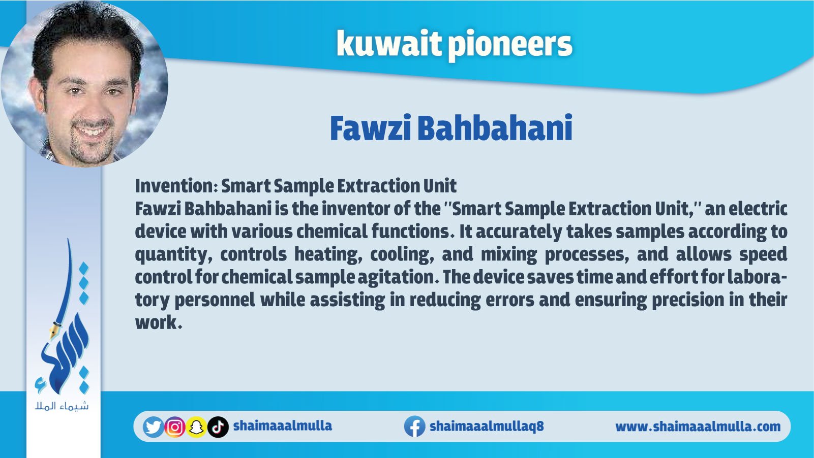 “Pioneers of Kuwait" is an encyclopedia contains a huge amount of information and images that cover all the earliest figures and achievements in various fields of the history of Kuwait. The book includes those who are pioneer in many fields such as: archaeology, history, geography, education, politics, arts, science, music, media, and other humanitarian, cultural, political, economic, and commercial aspects in the history of Kuwait.